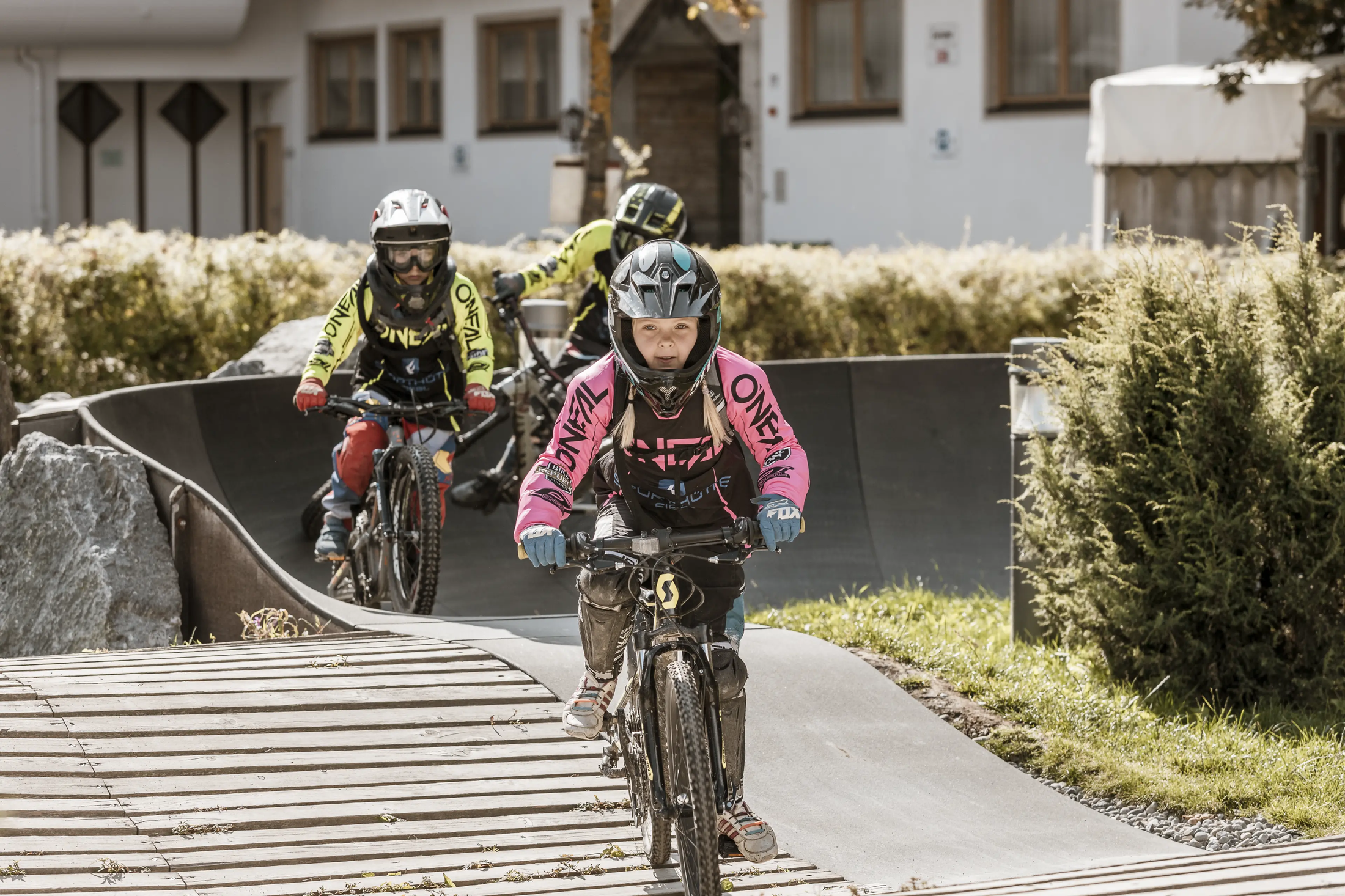 In Sölden hast du gleich zwei Pumptracks zur Auswahl. Der größere heißt Rollin‘, liegt an der Gaislachkogl-Talstation und ist der Treffpunkt schlechthin. Hier kannst du mit der Community deine Kreise ziehen und abhängen. Der Pumptrack Sunny auf der Ostseite der Ötztaler Ache eignet sich ideal für Kinder. Kleine Trail-Loops mit verschiedenen Obstacles fördern alle wichtigen Skills und ermöglichen einen spürbaren, schnellen Lernerfolg. In Oetz findest du den Pumptrack direkt am Ötztal Radweg. Sein Schotteruntergrund ist das perfekte Terrain, um dich aufs Biken im freien Gelände vorzubereiten. Ganz in der Nähe: der Übungstrail Sattelfest und der E-Bike-Parcours.