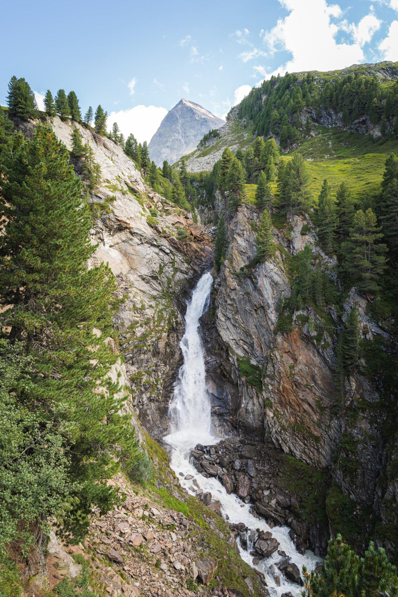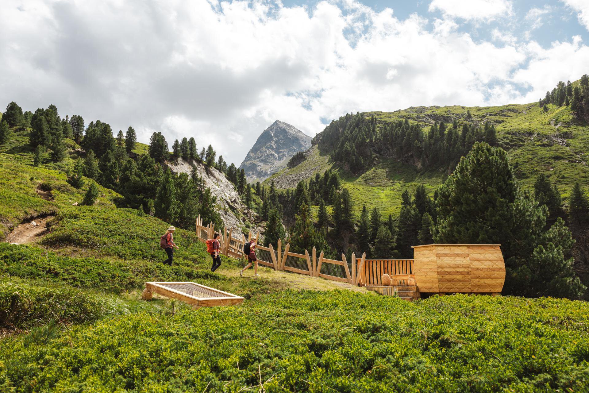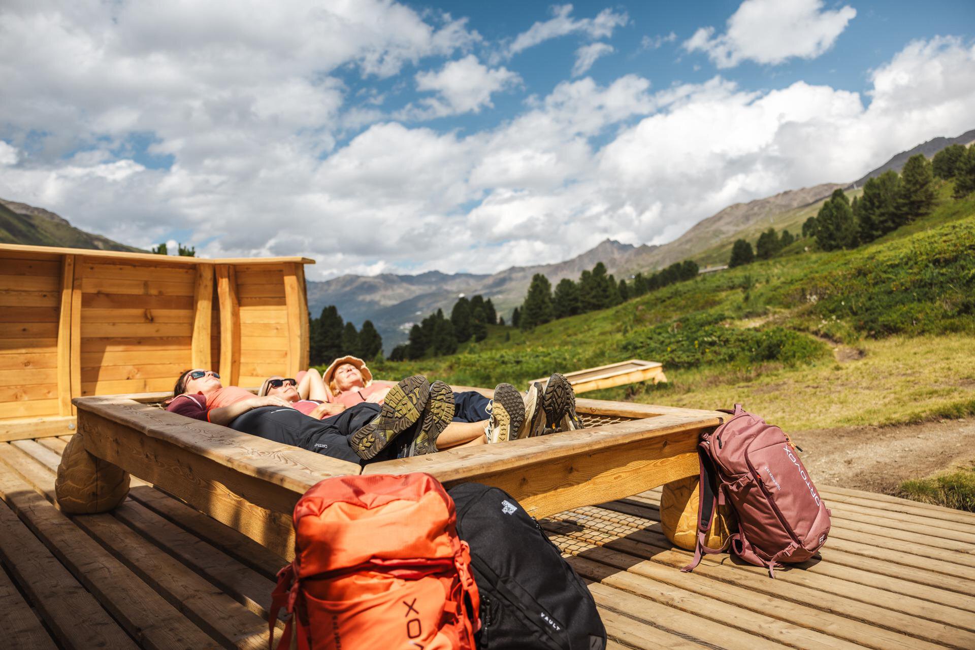Entlang des Themenweges des Obergurgler Zirbenwaldes kommst du auch an diesem Highlight vorbei. Die Ruheinseln, mit tollen Ausblick auf den Rotmooswasserfall und berauschender Tonkulisse, laden zum Verweilen ein.