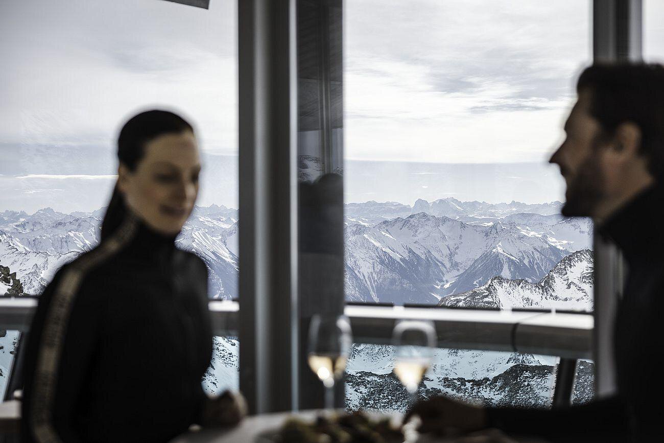 Der TOP Mountain Star ist ein Highlight, das Sie sich in Ihrem Winterurlaub in Gurgl auf keinen Fall entgehen lassen dürfen. Auf über 3.030 m thront auf einem schmalen Grat des Wurmkogels dieses architektonische Meisterwerk. Das Bergrestaurant ist eine gelungene Kombination aus Panoramaplattform und Gipfelbar, ideal für eine kleine Pause vom Skifahren. Neben kulinarischen Köstlichkeiten genießen Sie hier einen phänomenalen Blick auf die Ötztaler Alpen bis hin zu den Dolomiten. Die durchgehende Glasfront erlaubt eine 360°-Aussicht.