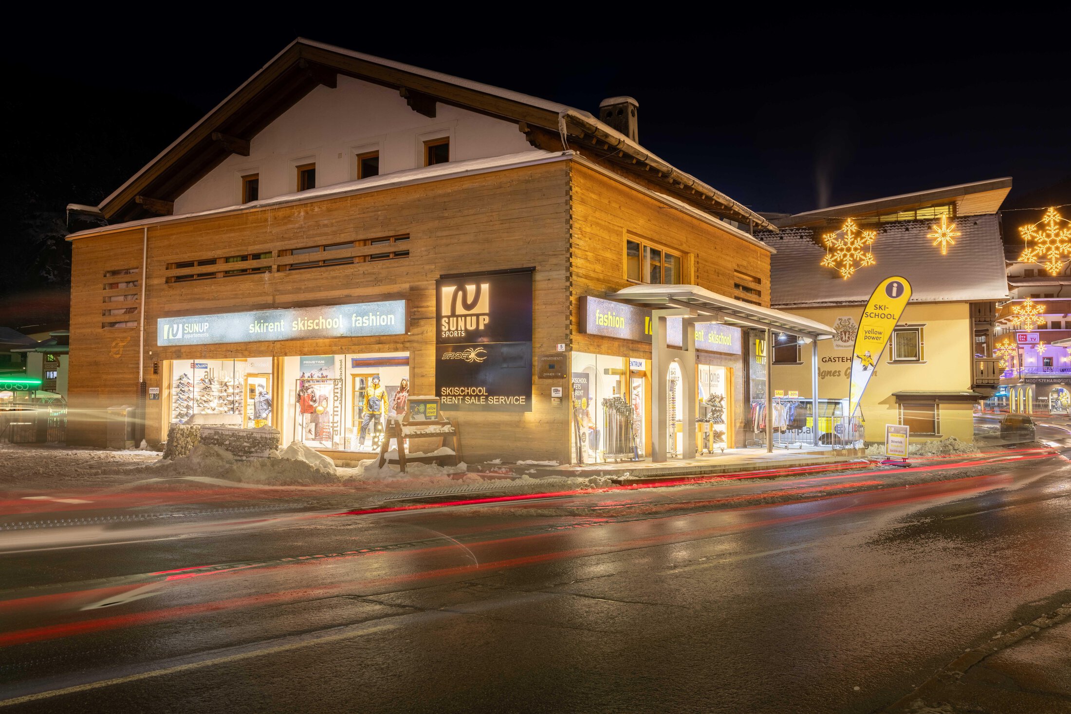 Unser Sportgeschäft SUNUP Sports Sölden mit Skiverleih sowie unsere SUNUP SKISCHOOL Sölden befindet sich direkt im Haus. Für alle Hausgäste gibt es natürlich spezielle Konditionen! Die Skipässe sind ebenso im Haus erhältlich - somit keine Wartezeiten an der Liftkasse!