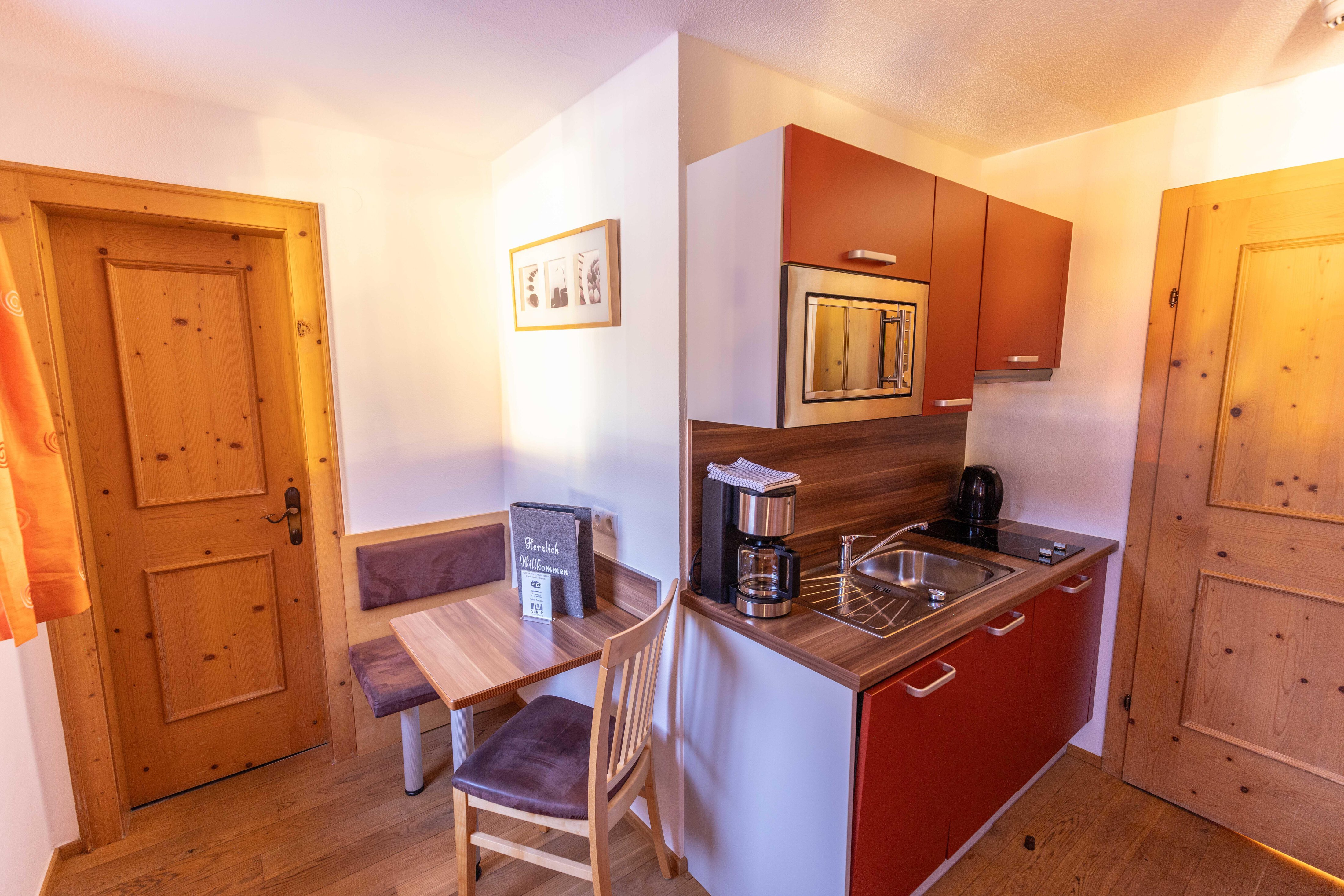 Sonstiges: Gegen einen Aufpreis von Euro 21,00 pro Person und Tag, können Sie das reichhaltige Frühstücksbuffet im 4-Sterne Hotel Liebe Sonne (gegenüber von uns) dazu buchen. Alle, die nach einem langen Skitag einen Ort zum Entspannen suchen, können den Wellness- und Spa-Bereich im Hotel Liebe Sonne benützen (Aufpreis Euro 15,-- pro Person und Tag).